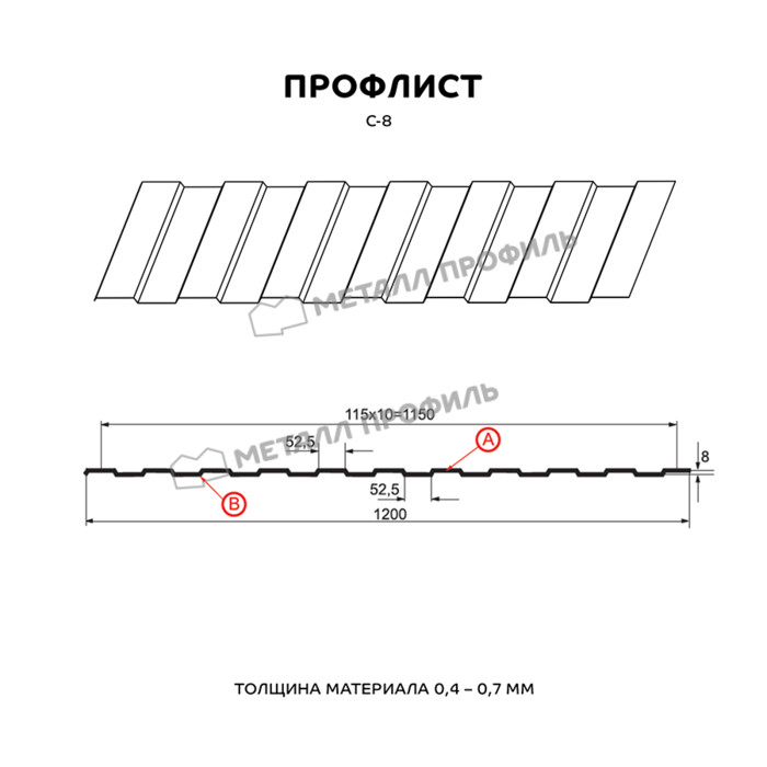Профлист Металл Профиль С-8 0.28 и менее Полиэстер RAL 8017 Коричневый шоколад | A Показать информацию