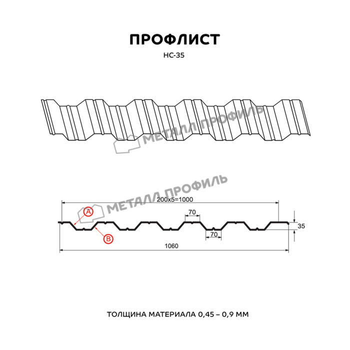Профлист Металл Профиль НС-35 0,45 Полиэстер RAL 3009 Красная окись Показать информацию