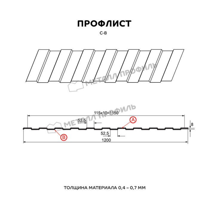Профлист Металл Профиль С-8 0,5 PURMAN® RAL 8017 Коричневый шоколад | B