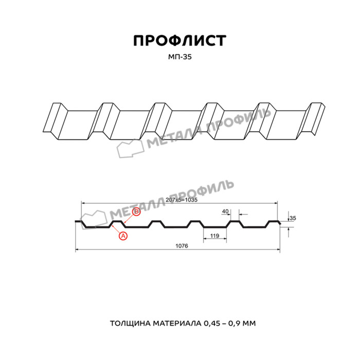 Профлист Металл-Профиль МП-35 Полиэстер 0.7 мм RAL 5015 Синее небо